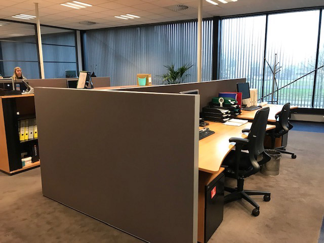 Büro-Trennwand, mobile Trennwand mit Textildruck und akustischem Dämm-Material